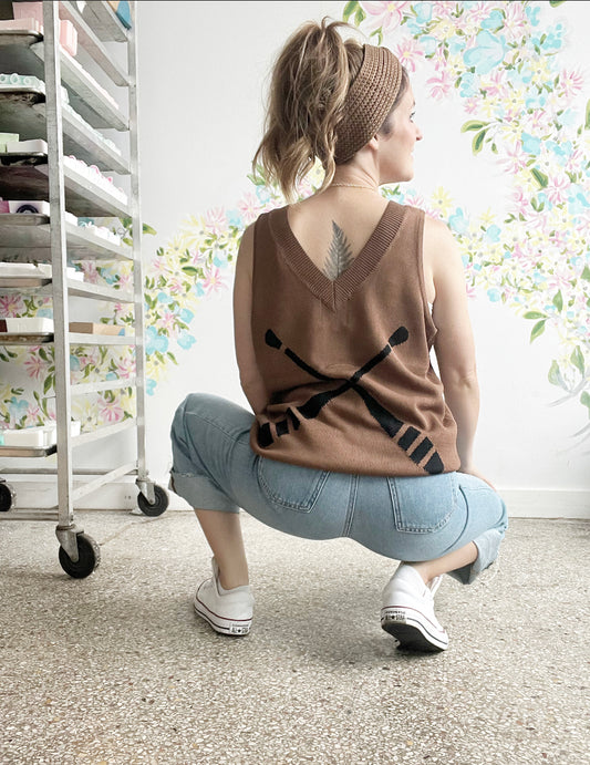 Canoe & Lake Dockside Knit Vest / Tank - Camel with Black Paddles