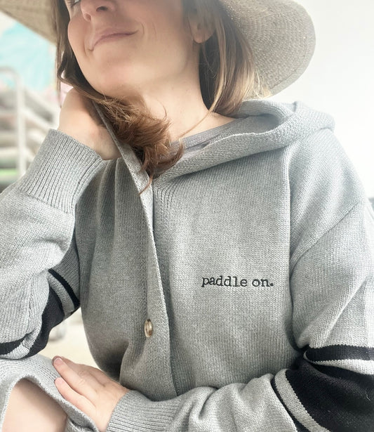 Canoe and Lake - Long Hooded Dockside Knit - Grey