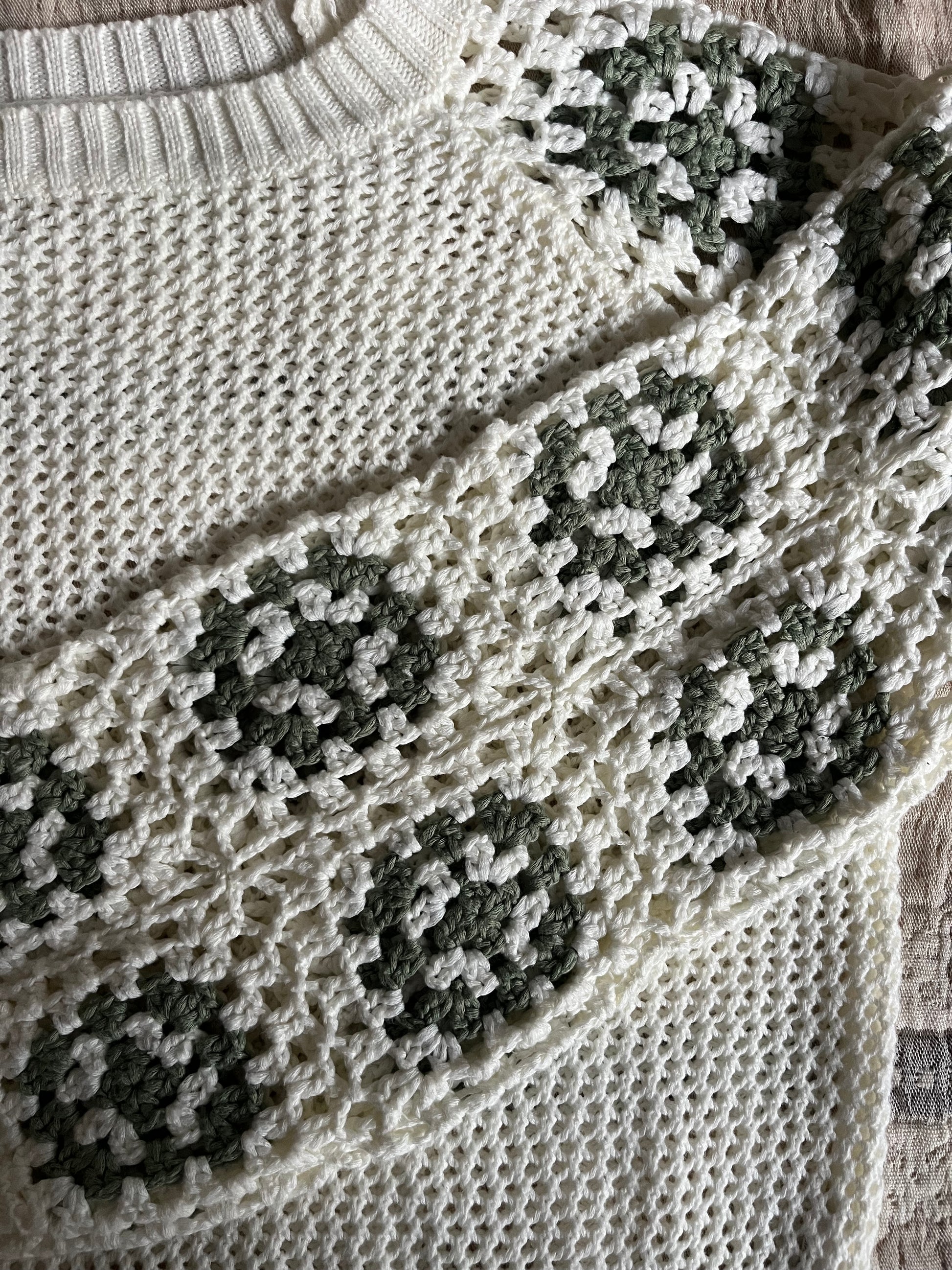 Cream and sage loose knit sweater SIZE medium